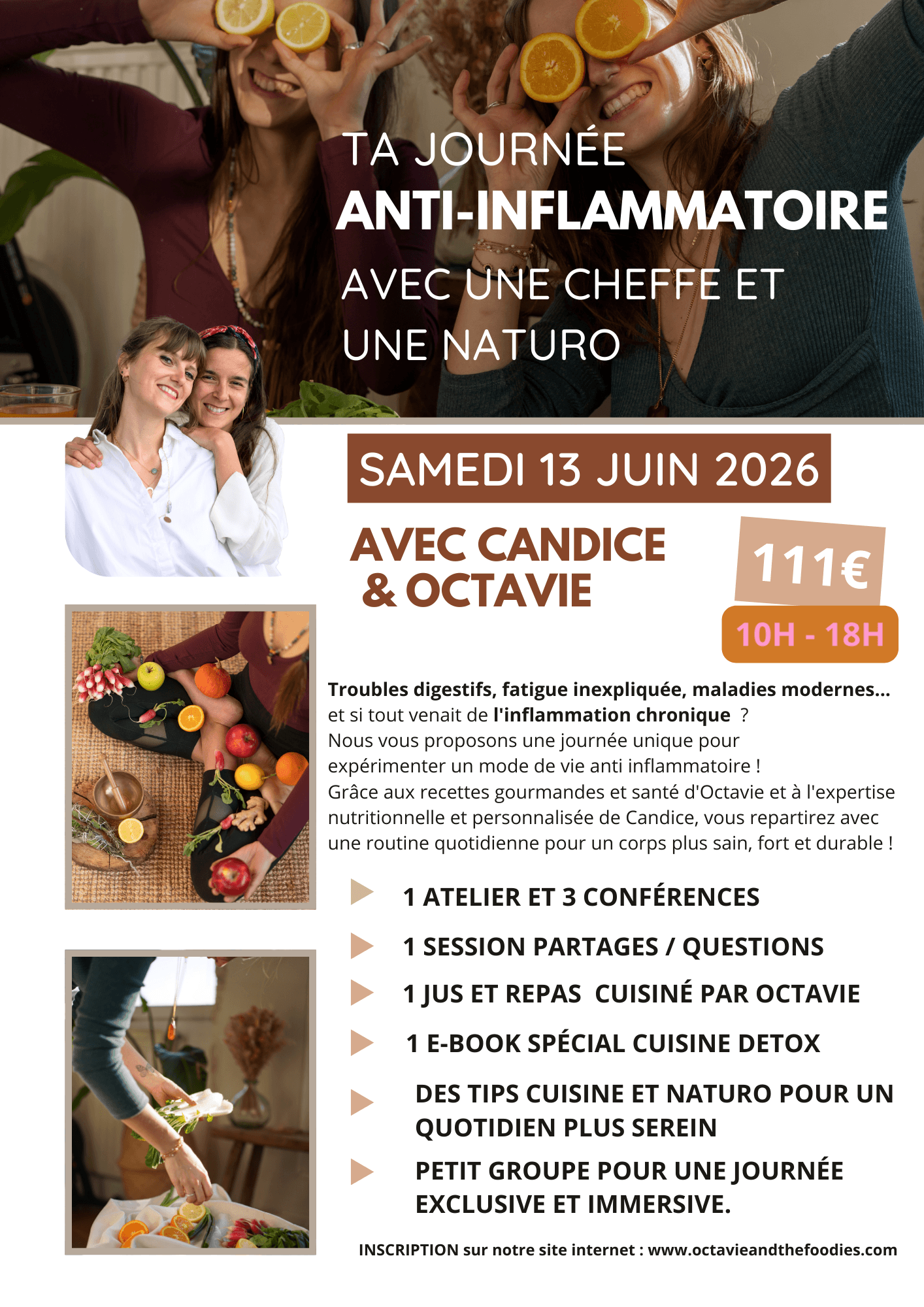 Grâce aux recettes gourmandes et santé d’Octavie et à l’expertise nutritionnelle et personnalisée de Candice Blache naturopathe, vous repartirez avec une routine quotidienne pour un corps plus sain, fort et durable !